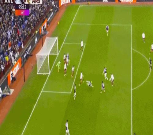 第65分钟,维拉的反击又轻松打穿阿森纳的后防,沃特金斯禁区内切劲射,拉亚再次救主,飞身完成扑救。