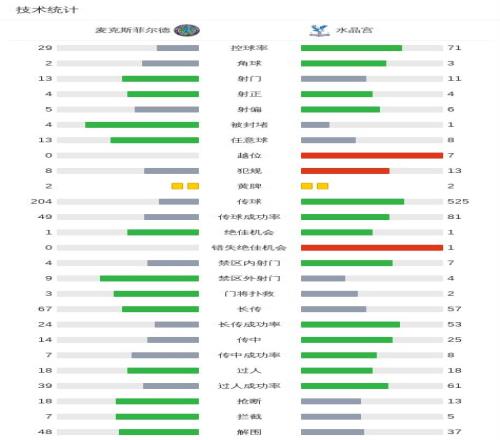 第68分钟,水晶宫扳回一城,因越位在先被判无效
