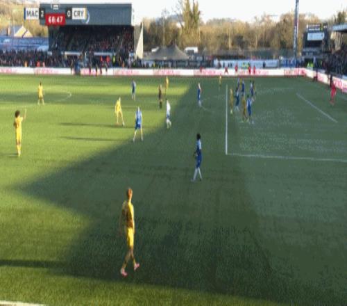 第43分钟,道森抢点破门,麦克斯菲尔德1-0领先卫冕冠军水晶宫!